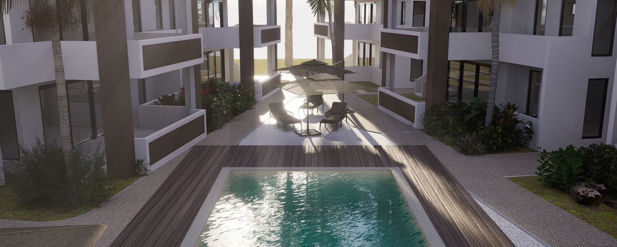 Op unieke locatie in de Sint Joris Baai ontwikkeling van een resort met 44 appartementen.